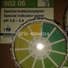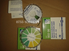 德国MN单色PH试纸上携带有一种或多种不同的 pH 值指示材料。对每一个PH值,试纸都会显示特定的颜色,对照PH值单位刻度为0.2到1的比色卡,可以确定样品的PH值,测定范围为0.0到14.0。万用试纸测量范围为 1-11 和 1-14 ;测量精度为 1 个到 2 个 pH 值单位。 特殊试纸的测试范围约为 2-5 ,但测量精度则为 0.2 , 0.3 或 0.5 个 pH 值单位。请注意在非缓冲的溶液中试纸的精度不如液态指示剂,而在缓冲溶液中两者的精度则相同。